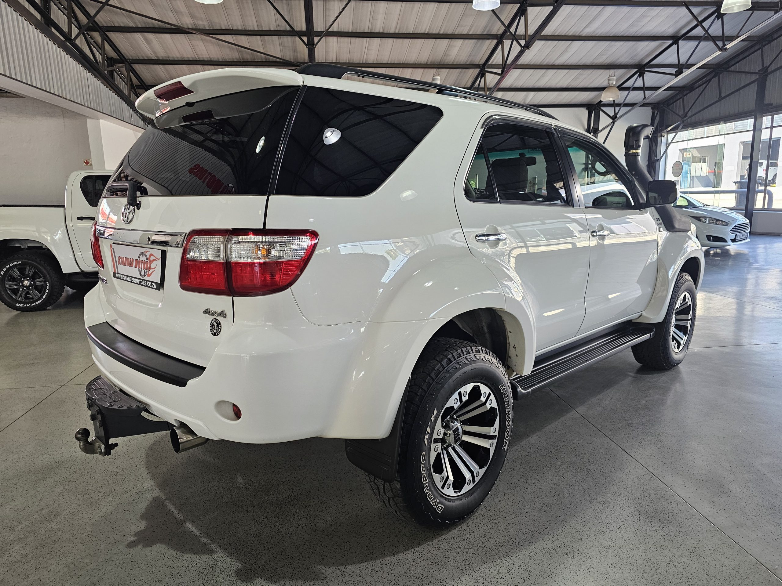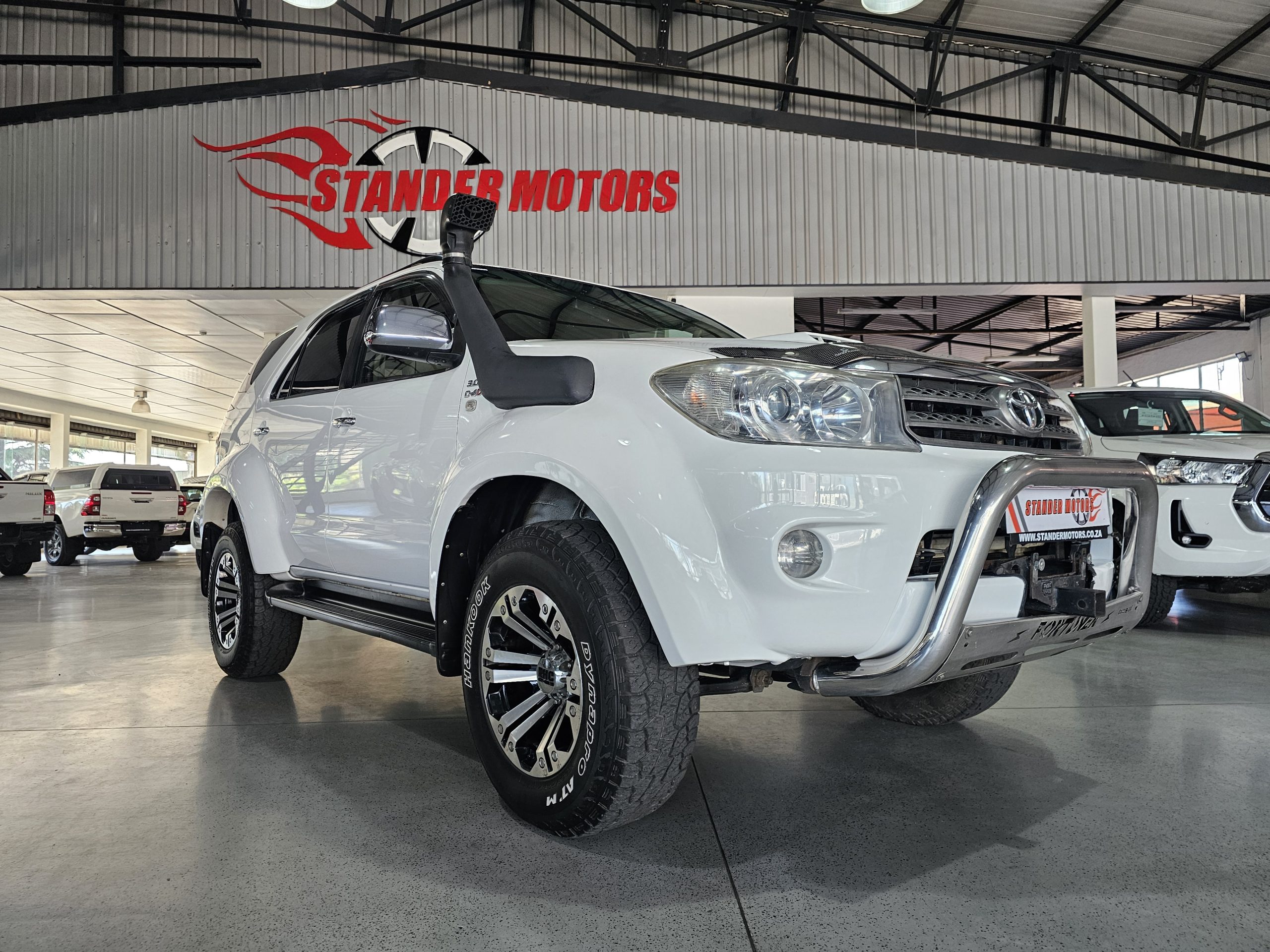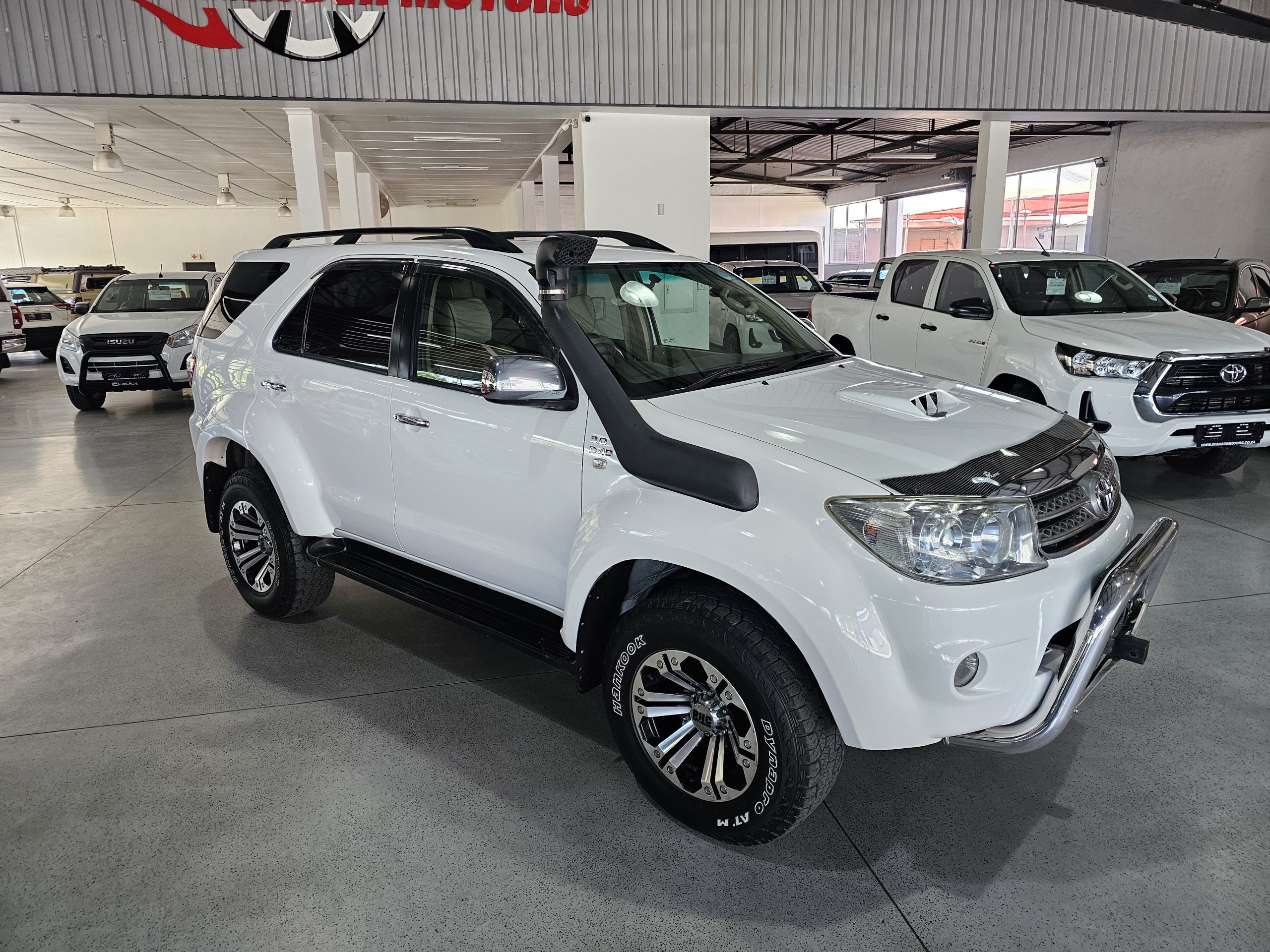 Discover this robust Toyota Fortuner 3.0 D-4D Raised Body 4x4, now available at Stander Motors in Gauteng. Priced at R259,995, this excellent-condition SUV is perfect for adventure seekers and family explorers alike. With a striking white exterior, it features RHC mags, a snorkel for those off-road adventures, and a wide body for added presence on the road. Inside, enjoy luxurious leather seats, electric windows, and six airbags for safety and comfort. The manual transmission offers a dynamic driving experience, complemented by a powerful 120kW diesel engine that delivers an average fuel consumption of 8.6 litres per 100km and a range of approximately 930km. Standard ABS, an alarm system, and a towbar add practicality to this versatile vehicle. With a maximum speed of 175 km/h, it combines performance with reliability. Whether you're tackling rugged terrains or navigating city streets, this Toyota Fortuner is built to impress. Come see it today at Stander Motors and take it for a spin.