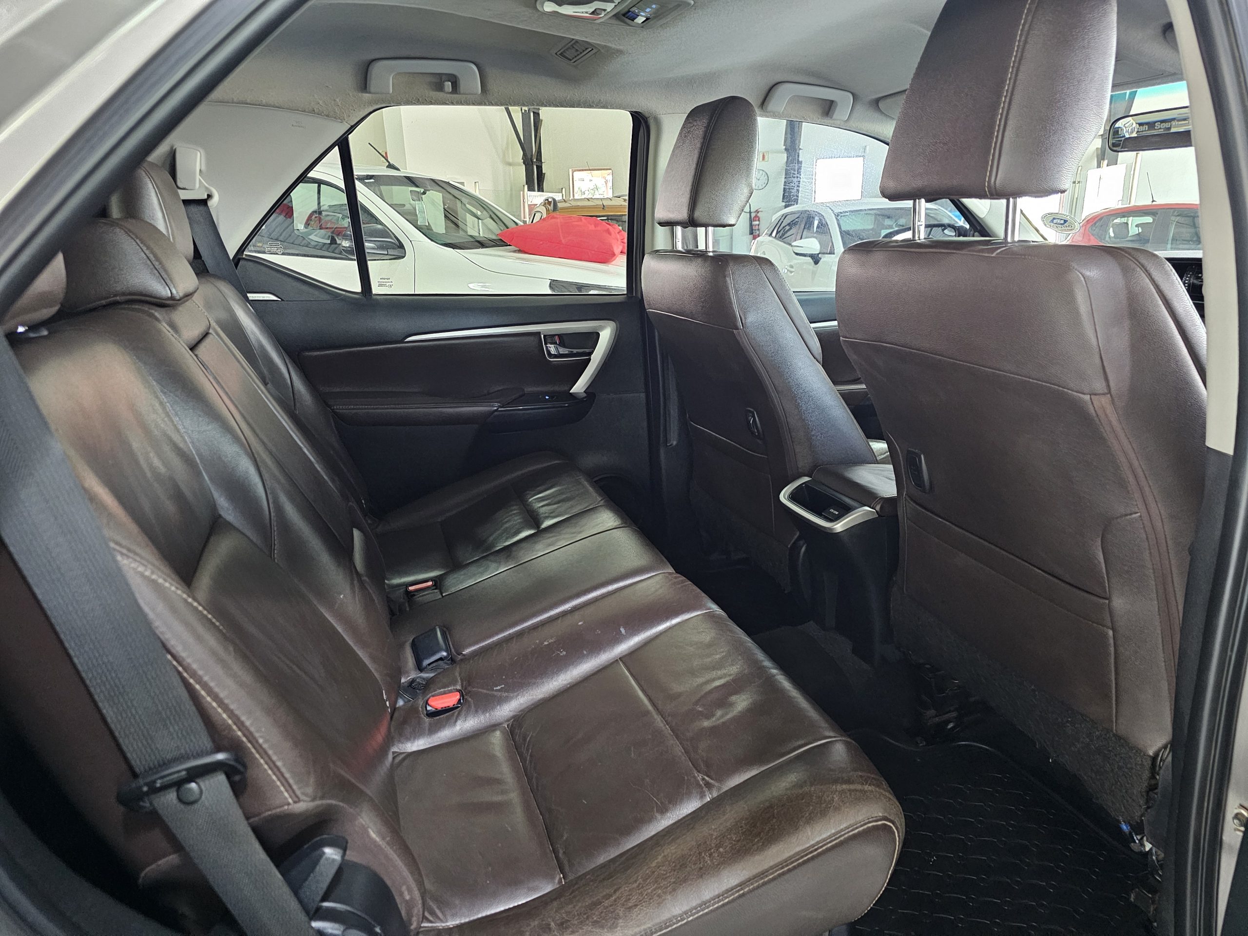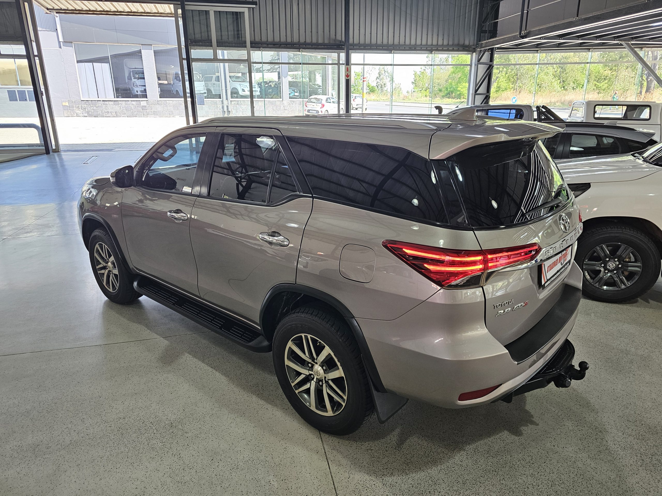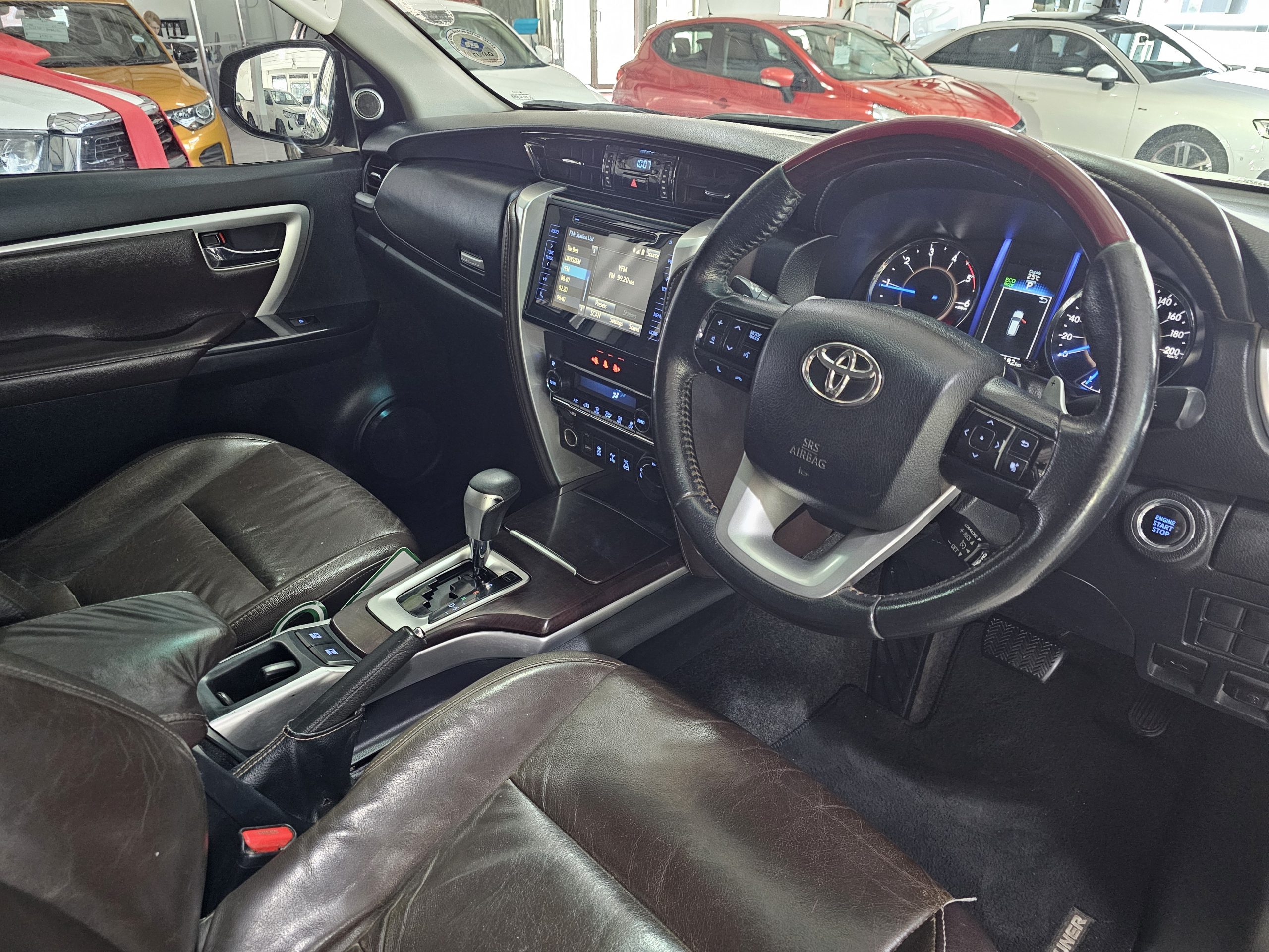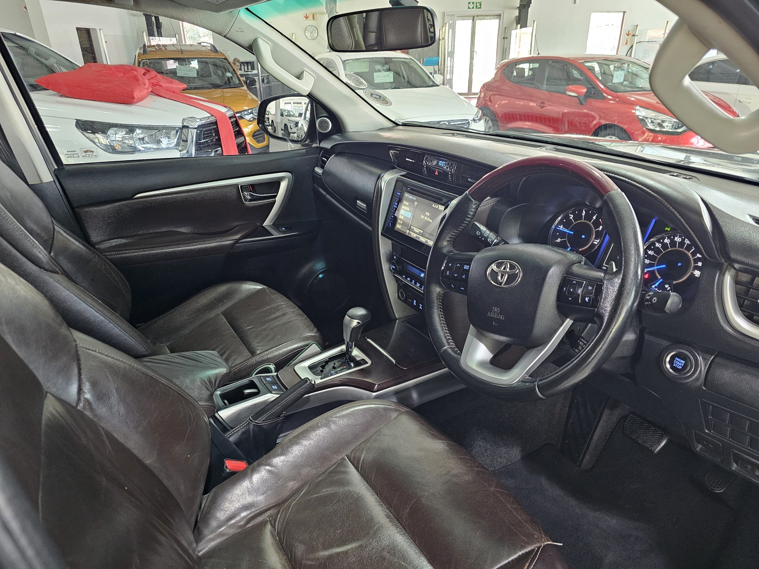 The Fortuner boasts a spacious interior with leather seats, electric windows, and seven airbags for enhanced safety. The rear-view camera makes parking a breeze, while the alarm system adds peace of mind. For those who love adventure, a towbar is ready to handle your trailer or caravan. The SUV’s body shape blends practicality with style, perfect for family outings or off-road escapades.