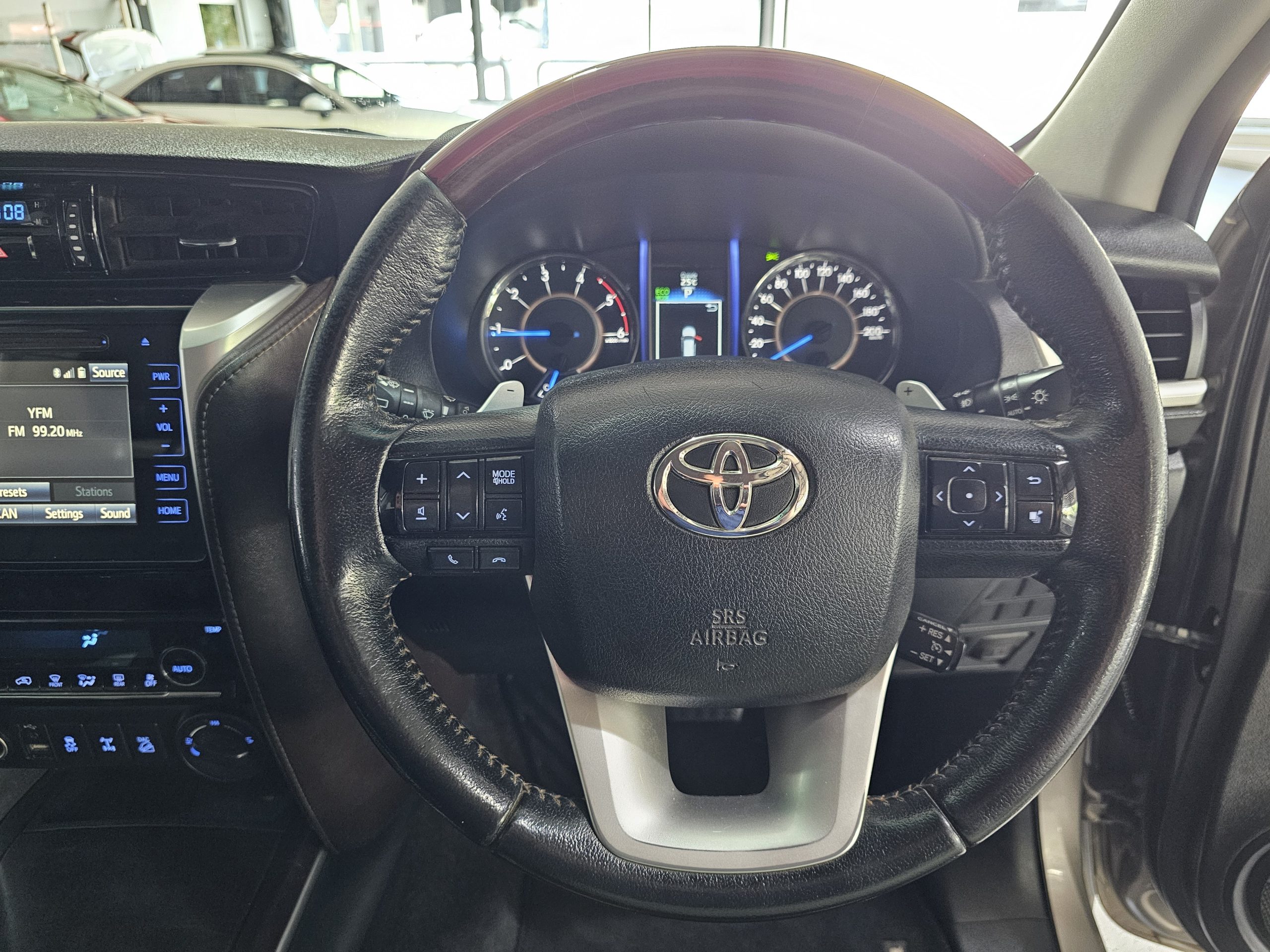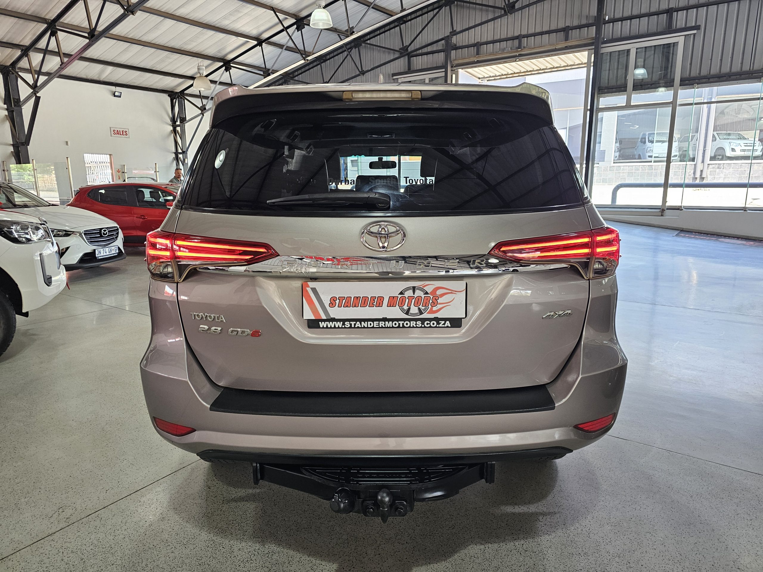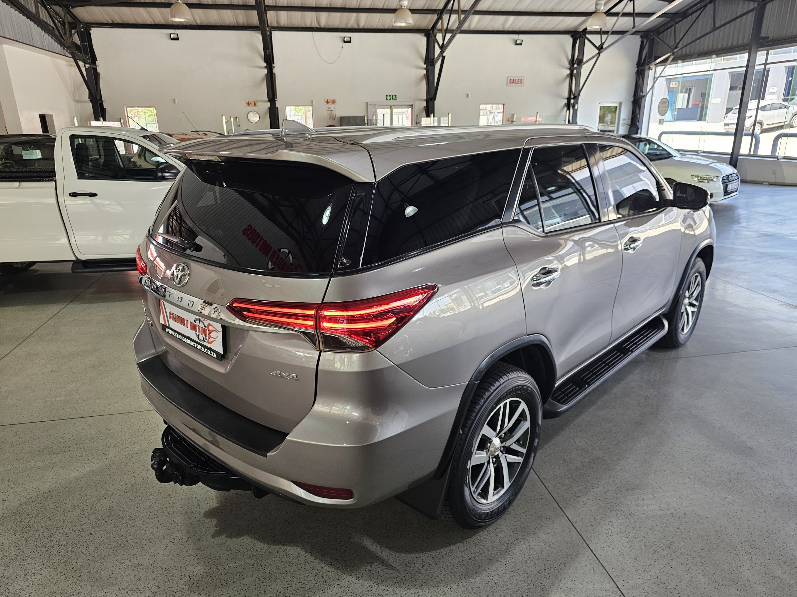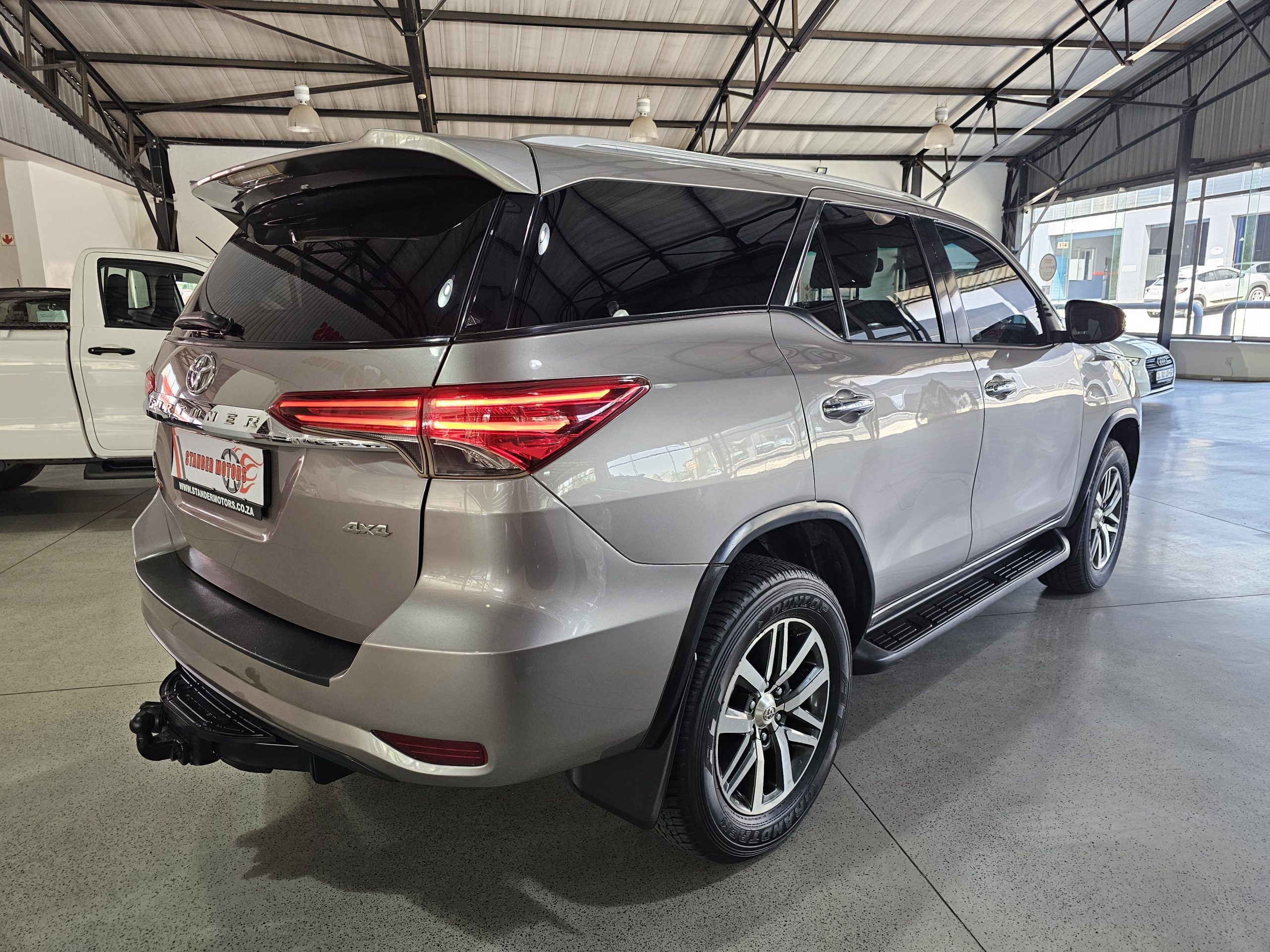The Fortuner boasts a spacious interior with leather seats, electric windows, and seven airbags for enhanced safety. The rear-view camera makes parking a breeze, while the alarm system adds peace of mind. For those who love adventure, a towbar is ready to handle your trailer or caravan. The SUV’s body shape blends practicality with style, perfect for family outings or off-road escapades.
