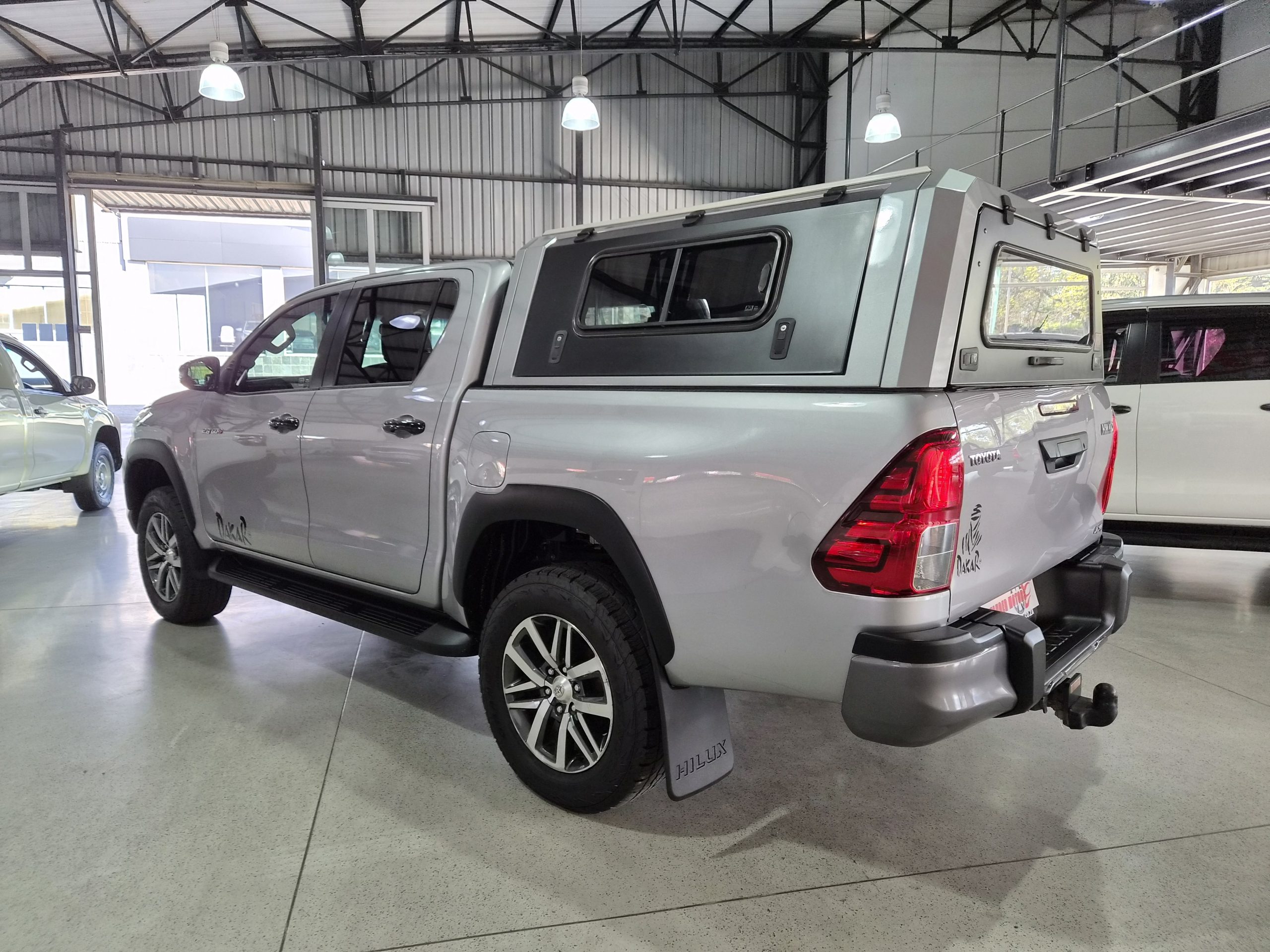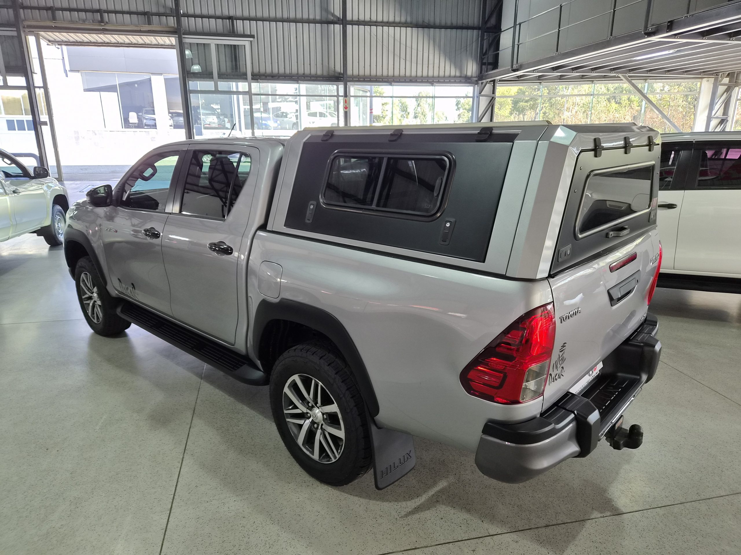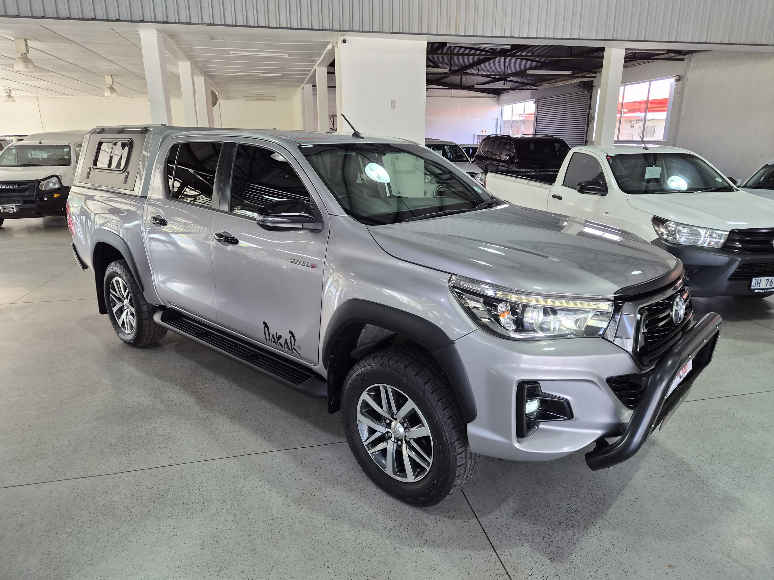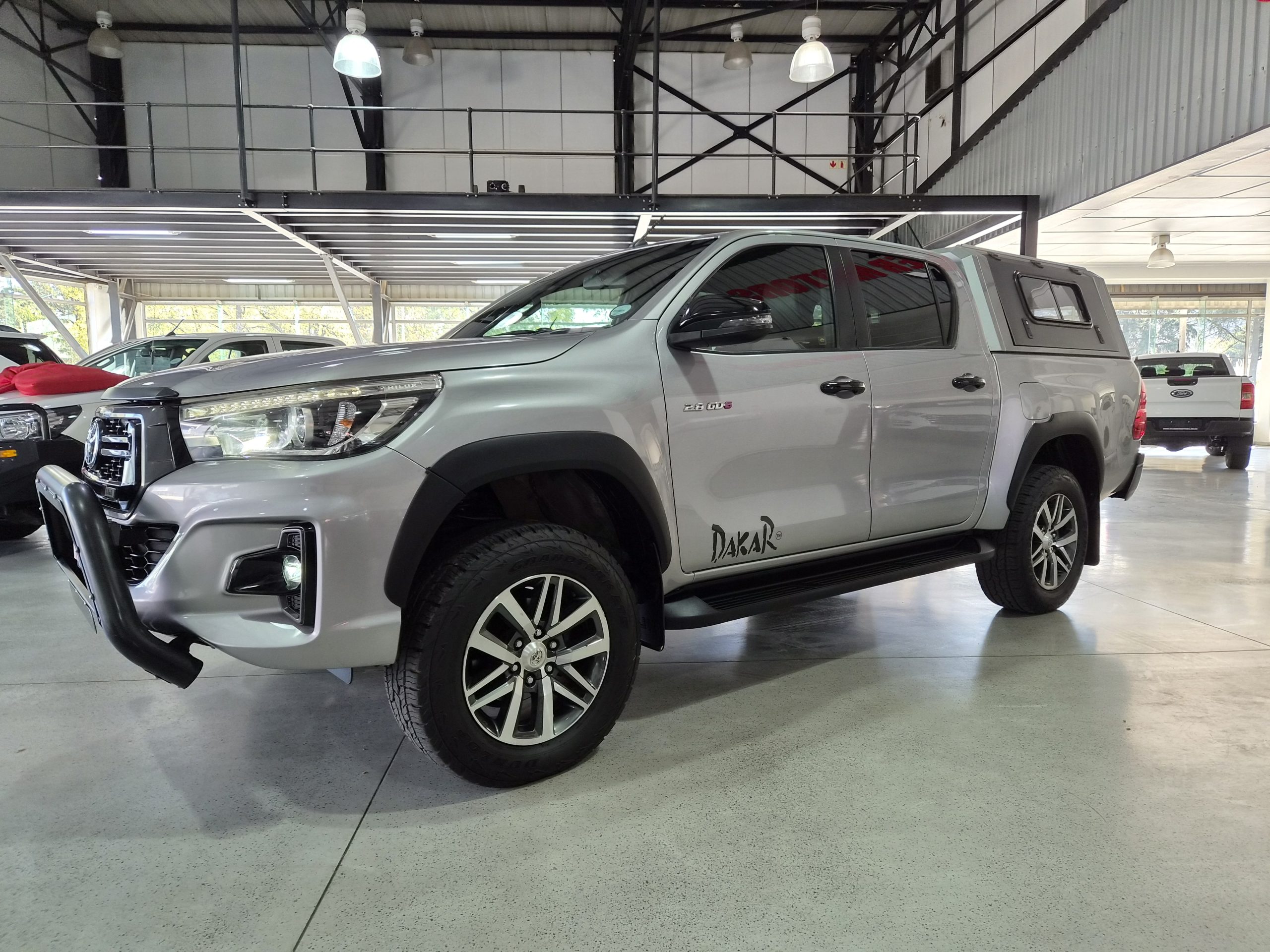 Discover the robust and stylish Toyota Hilux 2.8 GD-6 Raider 4x4 Double-Cab Auto, a true workhorse with a touch of luxury. Finished in sleek silver, this pick-up combines practicality with sophistication, boasting an excellent condition after covering just 160,000 km. Powered by a strong 130kW diesel engine, it offers a maximum speed of 175 km/h and impressive fuel efficiency with an average of 8.5 liters per 100 km and a range of 941 km.