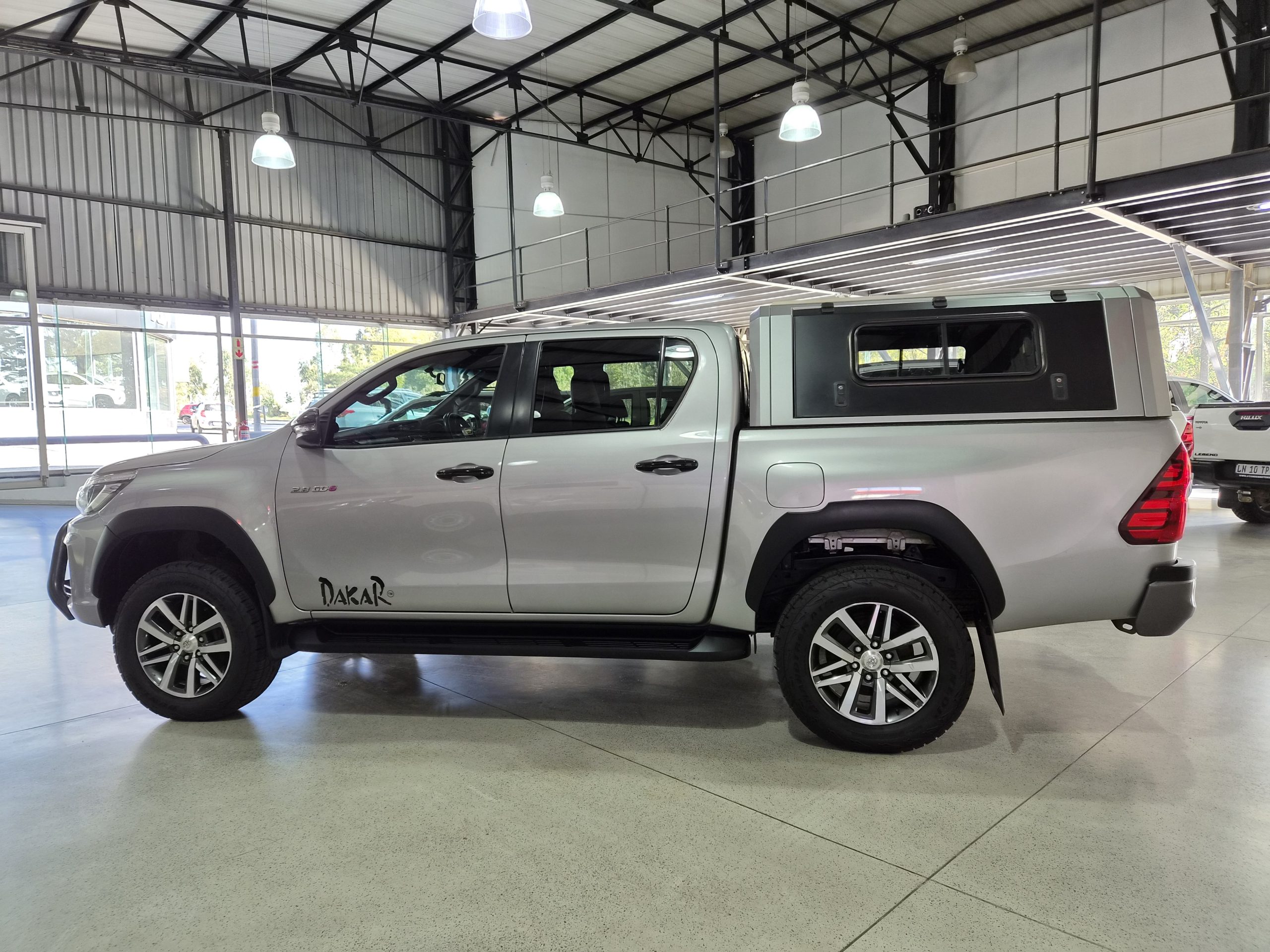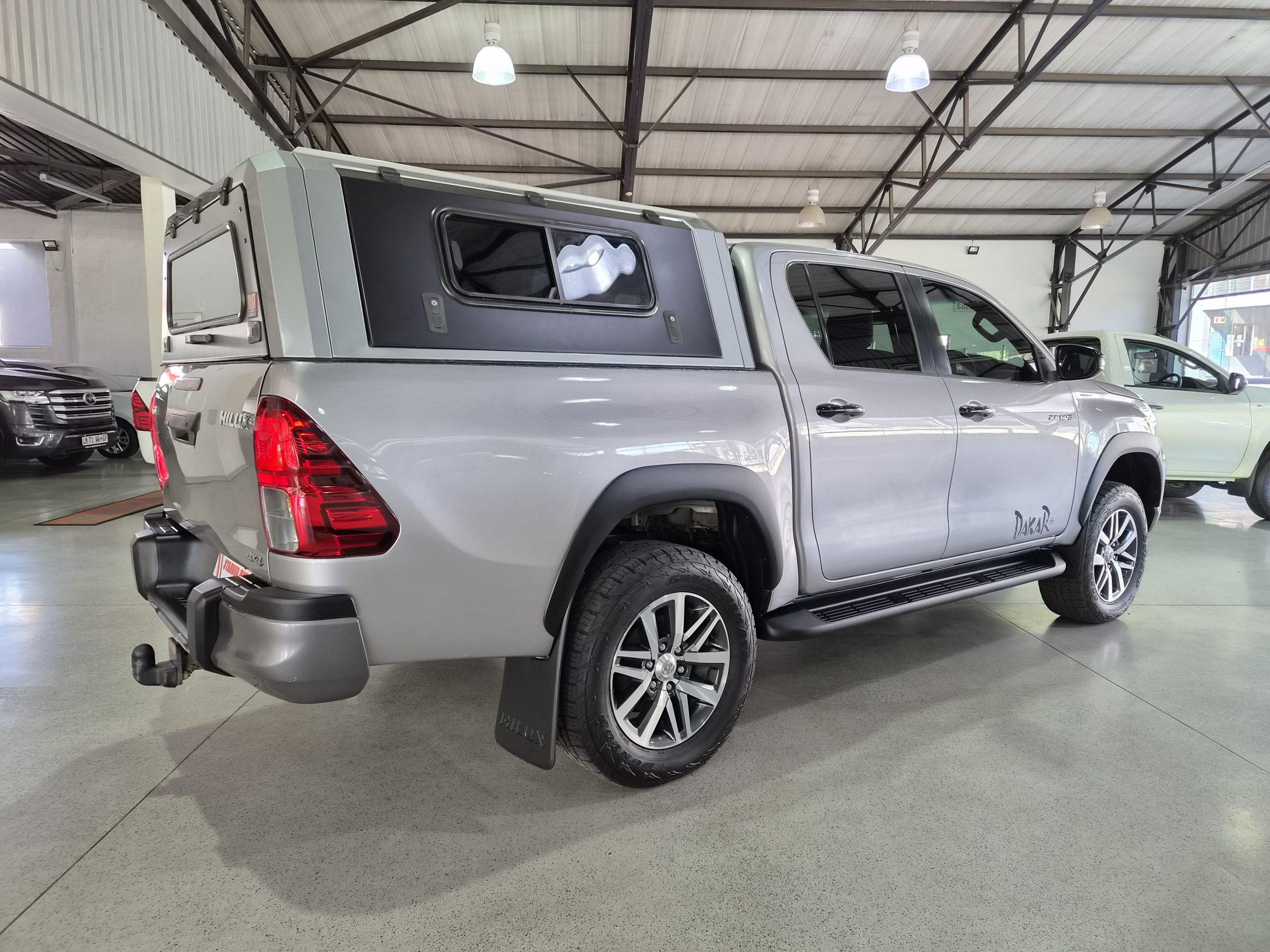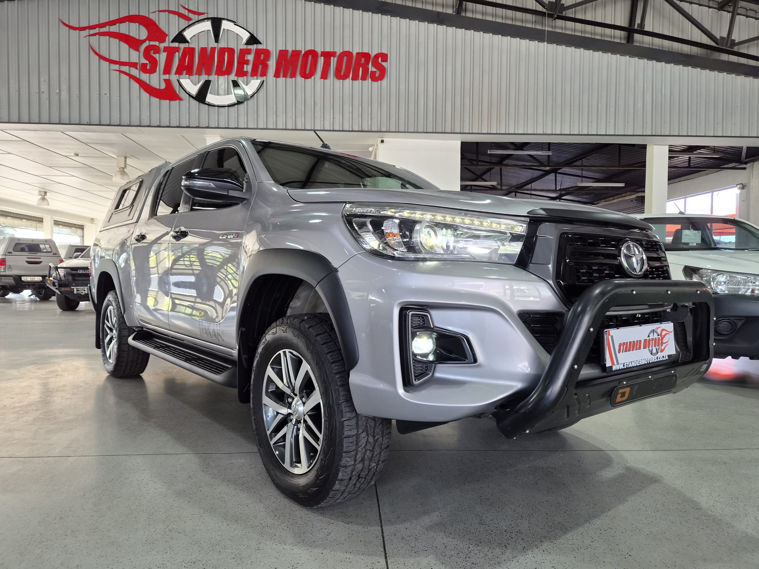 Discover the robust and stylish Toyota Hilux 2.8 GD-6 Raider 4x4 Double-Cab Auto, a true workhorse with a touch of luxury. Finished in sleek silver, this pick-up combines practicality with sophistication, boasting an excellent condition after covering just 160,000 km. Powered by a strong 130kW diesel engine, it offers a maximum speed of 175 km/h and impressive fuel efficiency with an average of 8.5 liters per 100 km and a range of 941 km.
