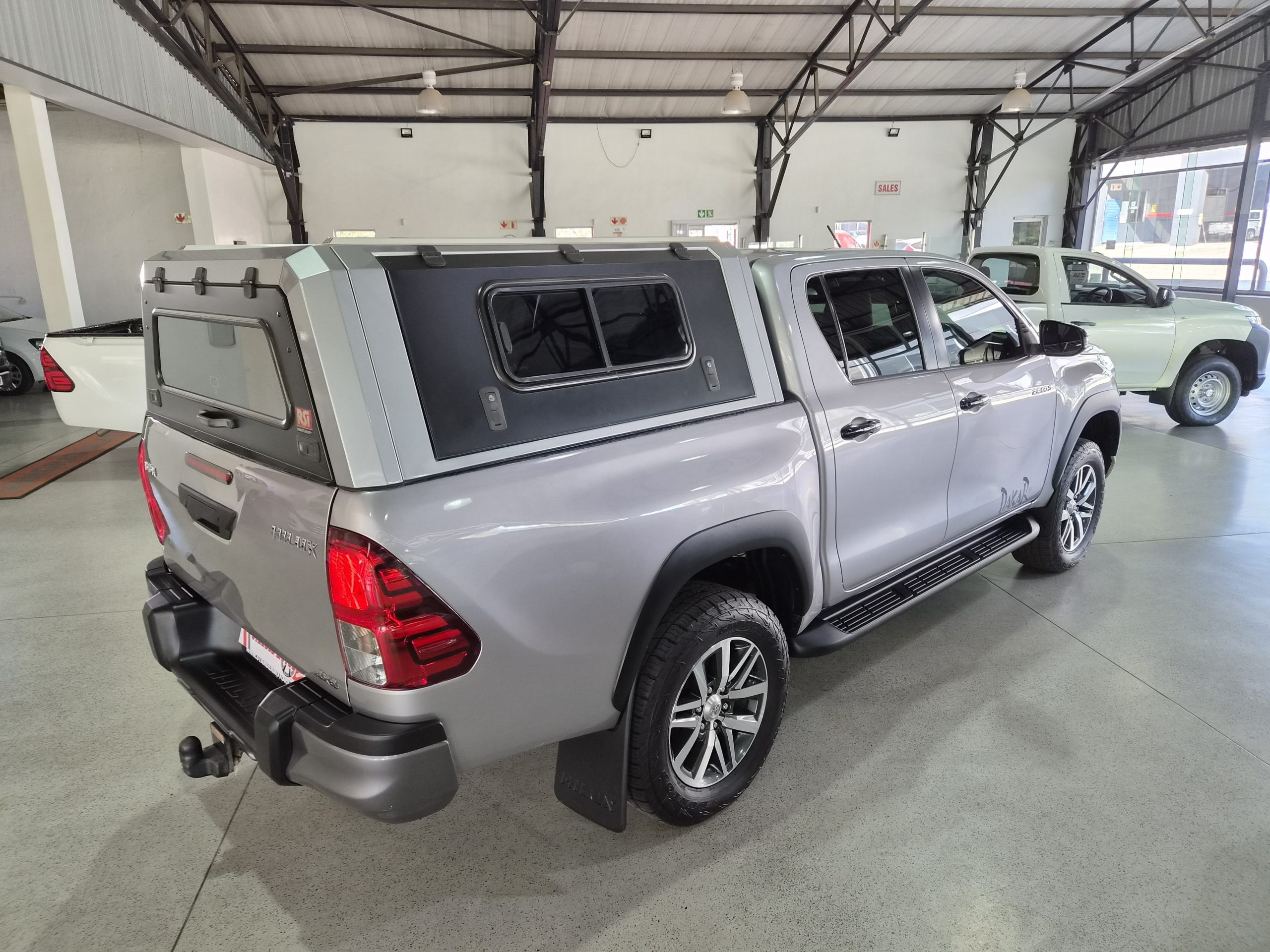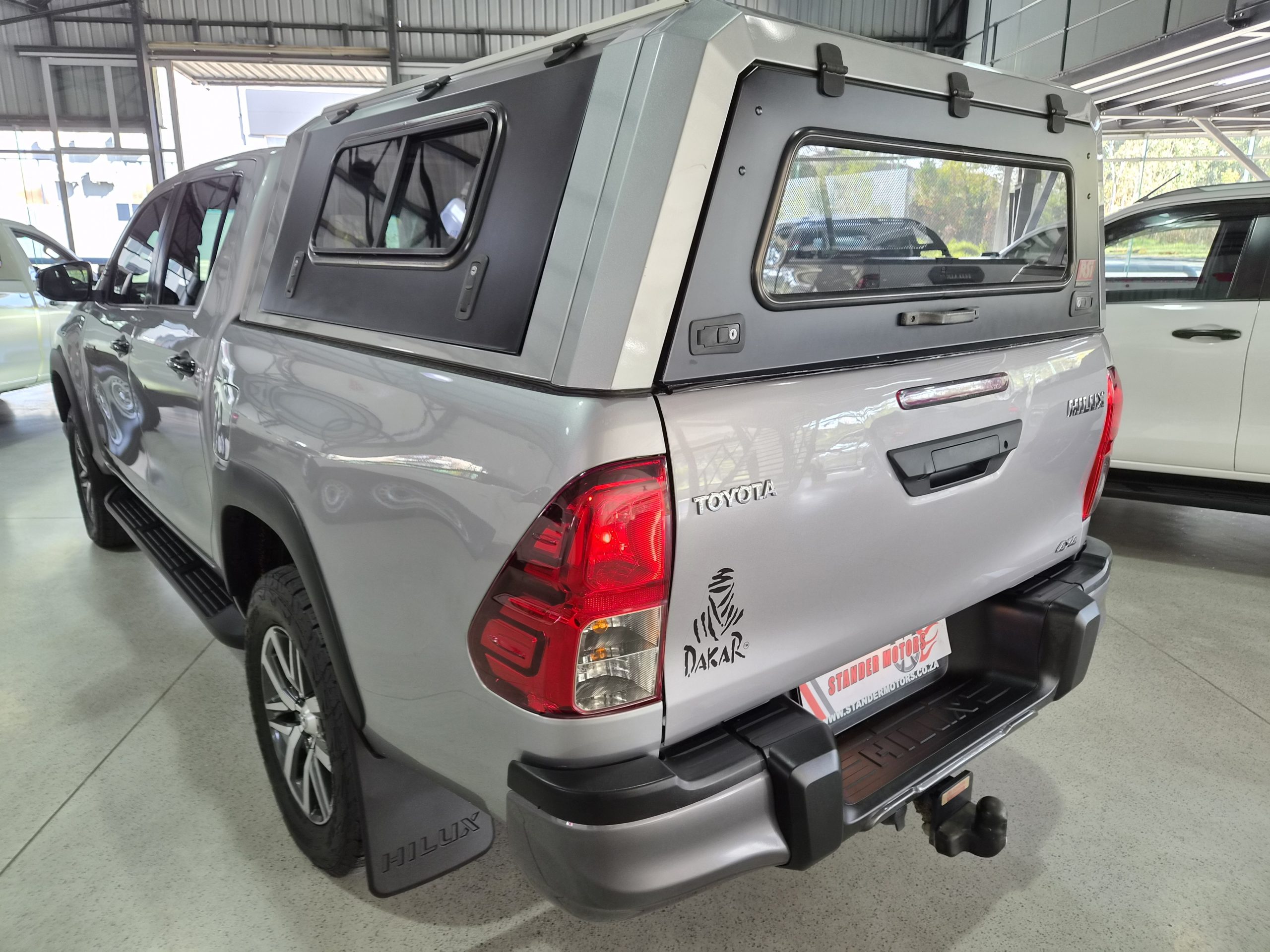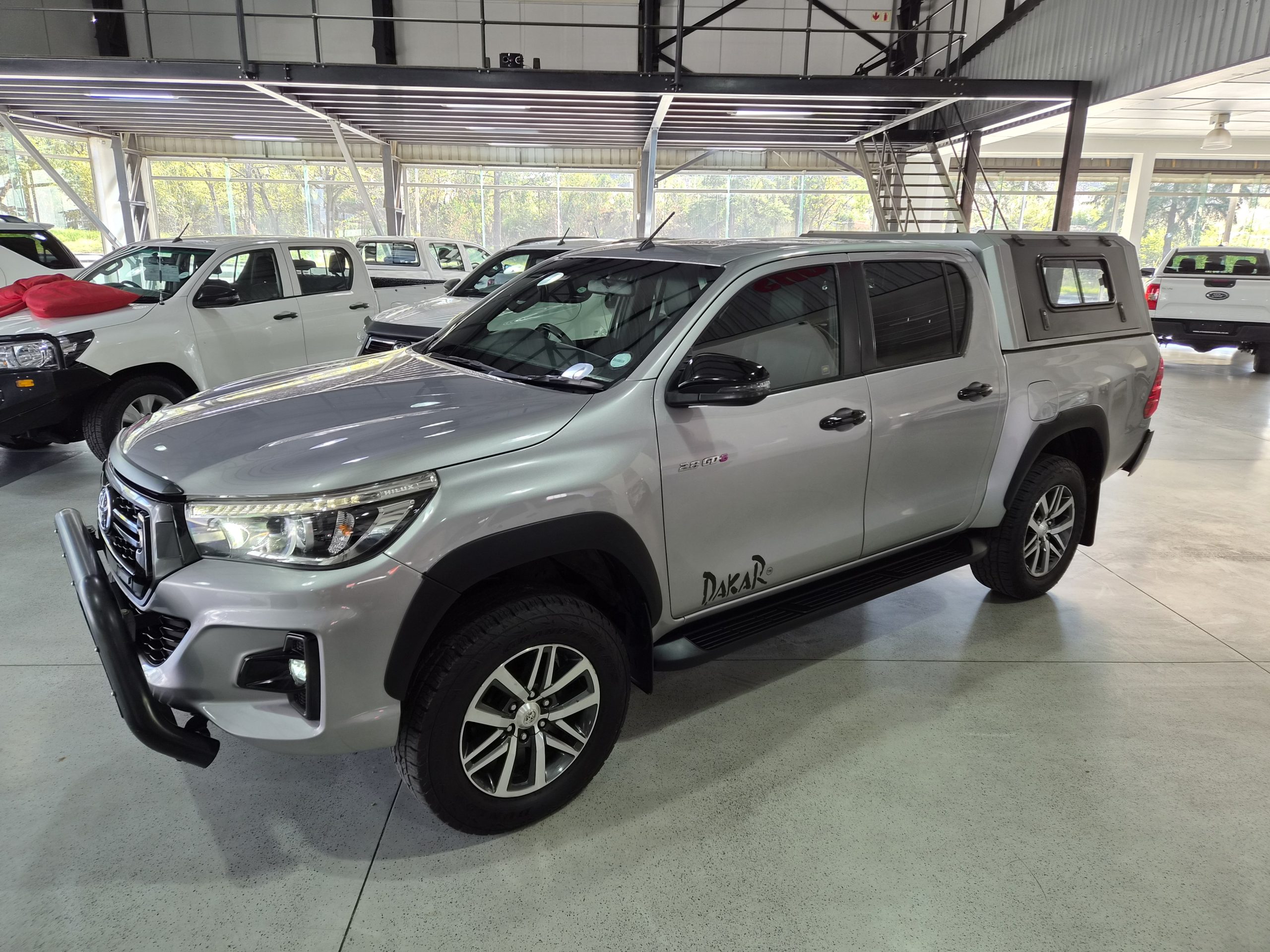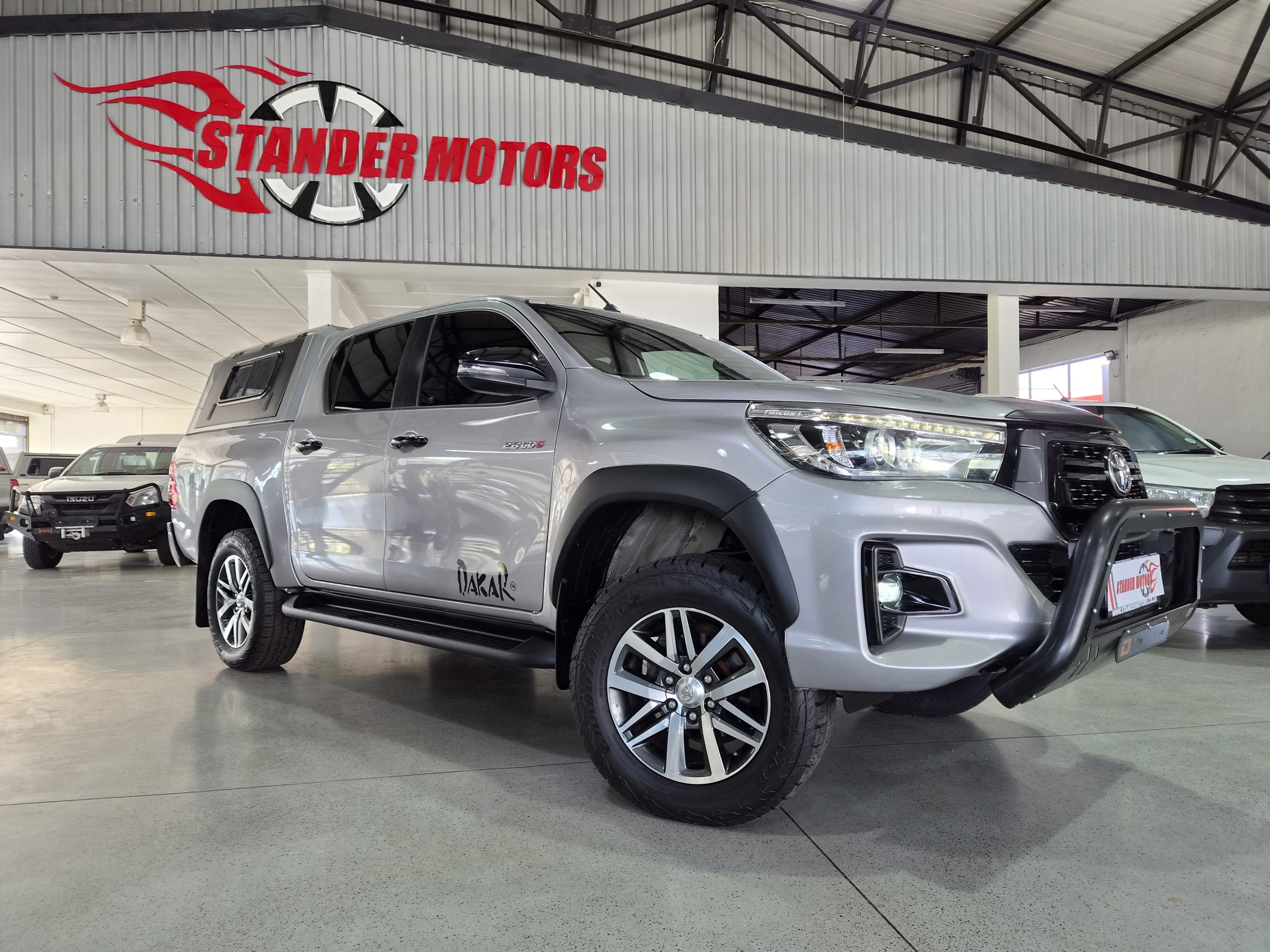 Discover the robust and stylish Toyota Hilux 2.8 GD-6 Raider 4x4 Double-Cab Auto, a true workhorse with a touch of luxury. Finished in sleek silver, this pick-up combines practicality with sophistication, boasting an excellent condition after covering just 160,000 km. Powered by a strong 130kW diesel engine, it offers a maximum speed of 175 km/h and impressive fuel efficiency with an average of 8.5 liters per 100 km and a range of 941 km.